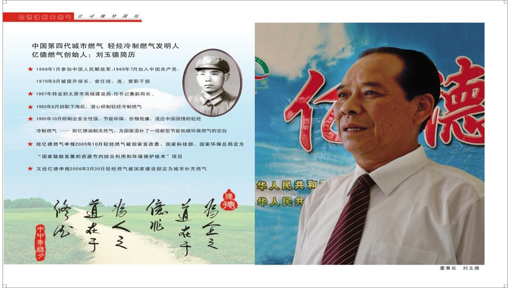 山西億德燃氣有限公司. 北京億德新發科技有限公司. 法人代表劉玉德: 2003年3月~2005年6月. 八次給黨中央. 國務院. 人大. 政協及有關部委呈報的輕烴常溫低壓冷冷制燃氣成熟. 造福人民的“喜報”:這是第八次喜報: