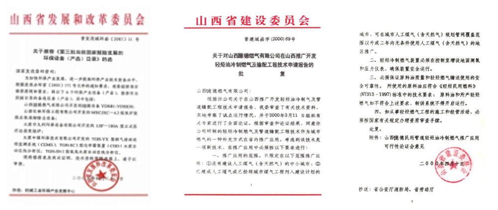 因建設部、公安部、勞動部1995年聯合對輕烴混合燃氣進行“封殺”嚴禁使用。(據中國農村能源協會張溶林主任講,共封殺270多家企業)。從此輕烴燃氣不可能再生存!山西億德輕烴“常溫低壓”冷制燃氣成功10年,想出娘子關造福全國人民:所以給黨中央. 國務院. 人大. 政協及有關部委報“喜報”匯報,才有希望造福全國人民: